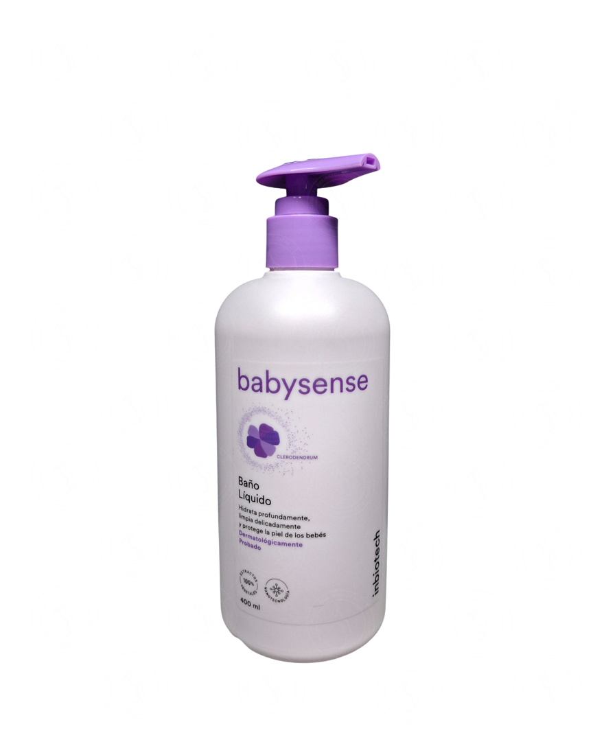 Babysense Baño Liquido, limpia delicadamente, hidrata profundamente y protege la piel de los bebés.